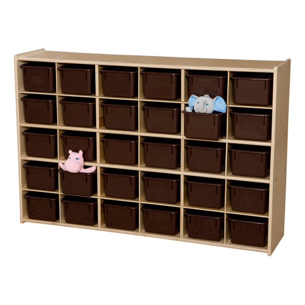 Neatly store classroom necessities with the Sprogs® 30-Tray Wooden Storage Unit. The roomy cubbies provide lots of space for organizing toys, books and puzzles or sorting student projects. Baltic birch construction, rounded edges and a UV finish make this unit a durable and safe choice for classrooms. Choose an assembled or unassembled storage unit with or without plastic trays. Add casters for an additional charge to make your storage unit mobile.
