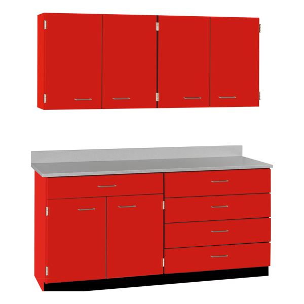Stevens Industries 4-Door Wall Unit and 2-Door/5-Drawer Base Unit Cabinet Suite is a great storage solution for your classroom. Durable Thermofused laminate is scratch-resistant and comes in a huge selection of colors that are sure to enhance your décor. The roomy cabinets feature five-knuckle hinges that open 270 degrees, and drawers and doors have ADA-compatible pulls. Double-pin shelf supports and locking tabs hold the shelves securely in place. Installation required. Due to varying building codes, mounting hardware is not included.