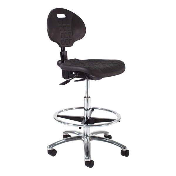 For a comfortable lab chair that won't break your budget, try Intensa's 840SQ Series Self-Skin Lab Chair. Easily adjust its height with the single lever control and rest your feet on the full-circle footrest. Choose a black or chrome base with casters or a black steel base with glides.