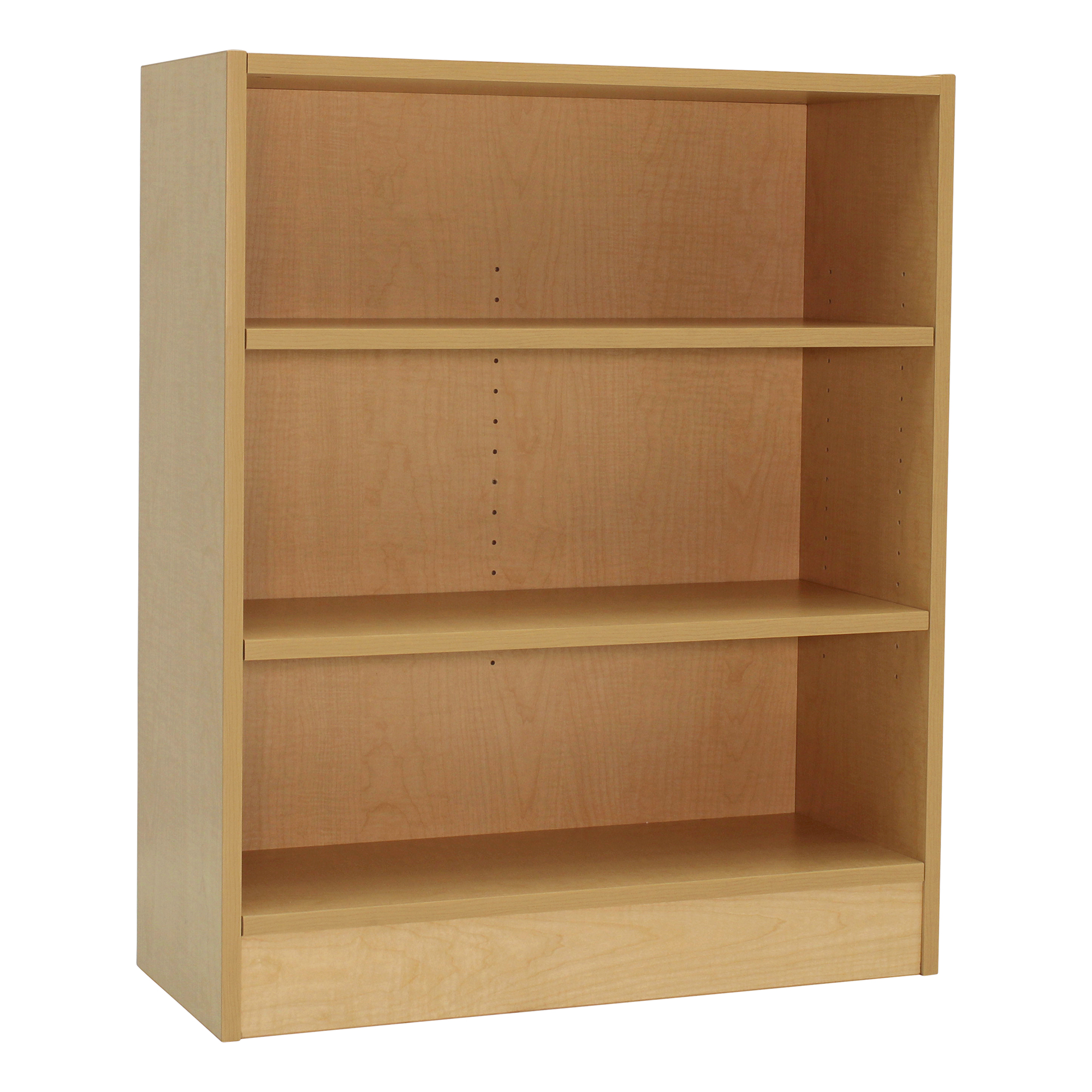 Store your books in a spacious and durable case with the Heavy-Duty Series Three-Shelf Bookcase (36" H) from Norwood. This bookcase is constructed of particle board with a maple laminate finish to withstand years of heavy use. The PVC edgeband prevents peeling. It also has two adjustable shelves and one fixed shelf for additional space.